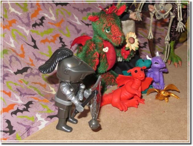 And while the two bearies enjoyed their treat the next guests arrived... Vincent, the house elf, the teenager dragons Ruby, Emmy and Purple, Gertie's dragon friend Esmeralda, the tiny dragon Häppchen and Boney, Borthud's pirate buddy. But of course Boney wasn't the only veeeeeery skinny guest at the party...