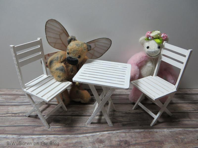 Decisions related to gifts from dear blog friends are a nice bridge to the next topic because we would also like to show you some news about the porch of the Beary House. The first to show are two garden chairs and a small table…